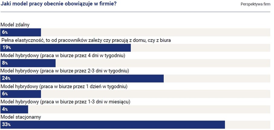 z hybrydowym lub zdalnym modelem pracy nie planowała wprowadzać zmian w tym zakresie w 2023. Jednak co piąty pracodawca deklarował chęć aktualizacji dotychczasowej polityki home office poprzez zwiększenie obecności pracowników w biurze.