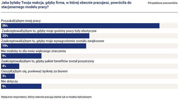 w organizacji, są wynagrodzenie, stabilność zatrudnienia i ciekawe wyzwania. Równie wysoko plasuje się jednak kwestia modelu pracy. Mało prawdopodobne jest zatem, aby firmy masowo decydowały się na radykalne zmiany w zakresie dostępu do pracy zdalnej - zauważa Aleksandra Tyszkiewicz.